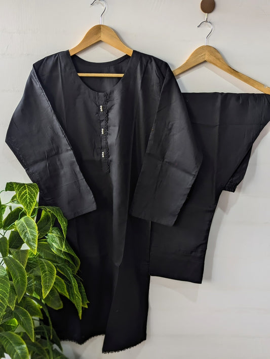 Black Solid Lawn 2pc Co-ord Set
