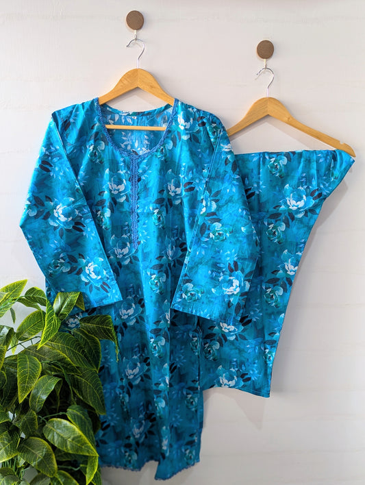Bluish Petals Lawn 2pc Co-ord Set