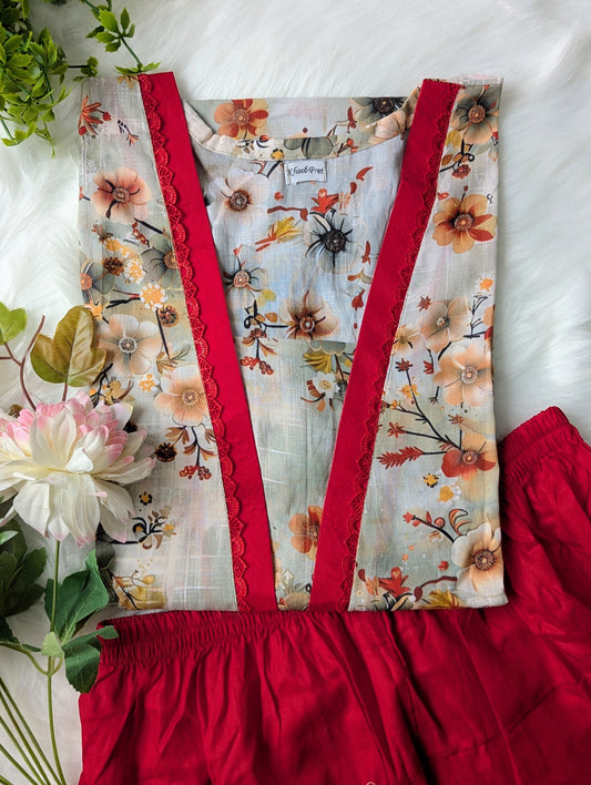 Burgandy Florals Linen 2pc Dress