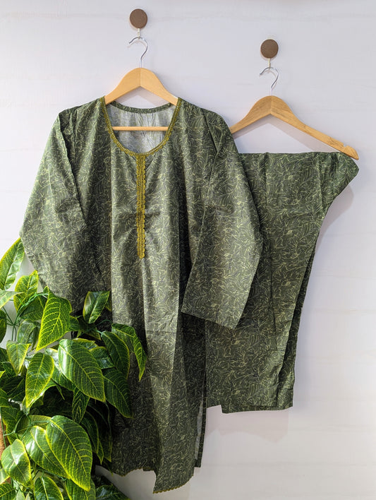 Dark Green Flora Lawn 2pc Co-ord Set