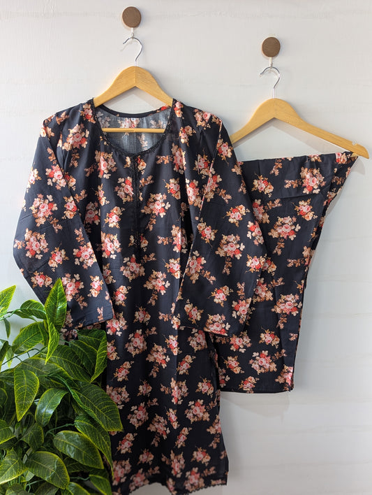 Black Florals Lawn 2pc Co-ord Set