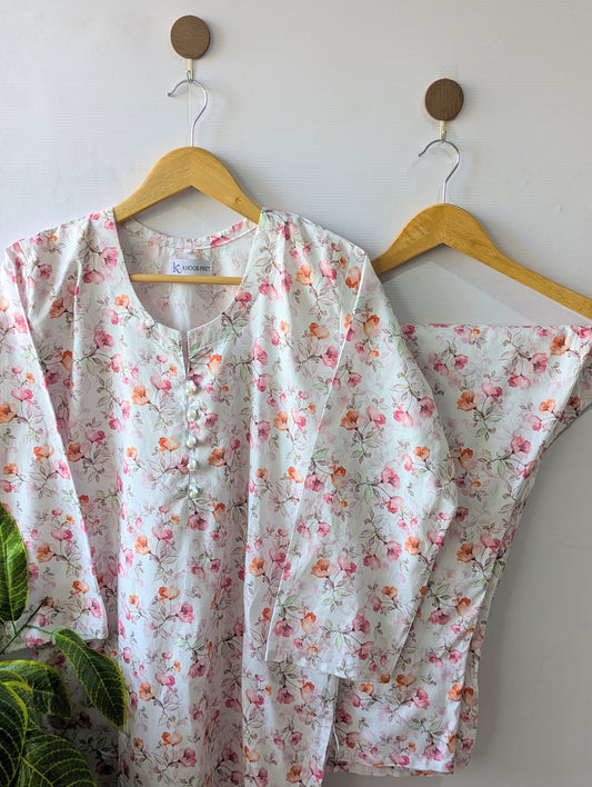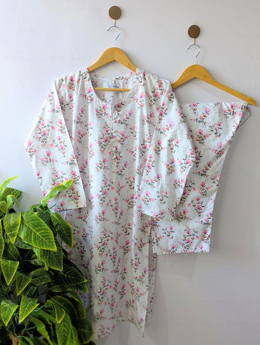 White & Pink Petals Lawn Stitched 2pc