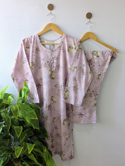 Pinkish Petals Lawn Stitched 2pc