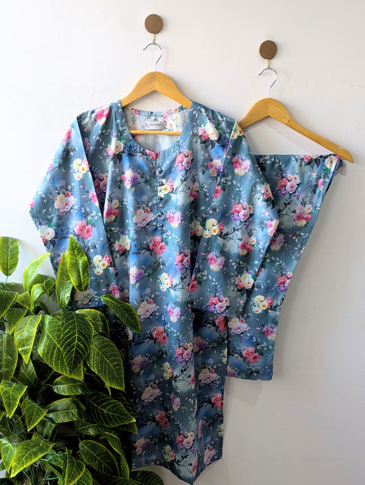 Blue Florals Lawn Stitched 2pc