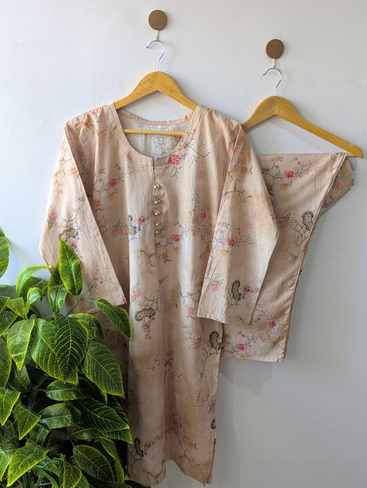 Beige Florals Lawn Stitched 2pc