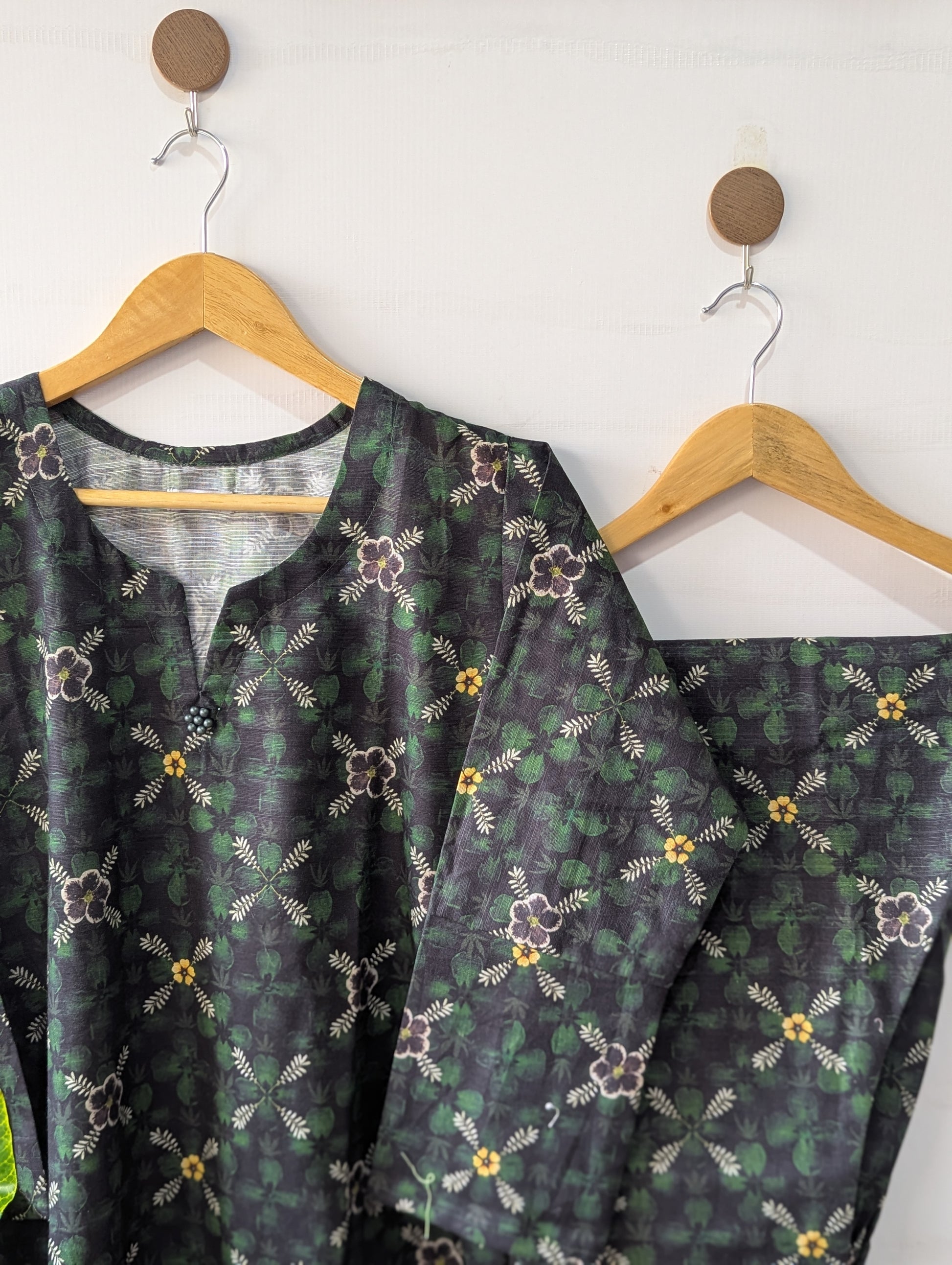– Introducing the Printed Khaddar 2-piece set, featuring a coordinated shirt and bottom plazo crafted from high-quality Khaddar fabric. This premium material is renowned for its warmth and breathability, making it perfect for the winters & spring. Available in a variety of colors, the 2-piece set provides a fashionable, coordinated look that’s easy to style for both casual wear and special events.